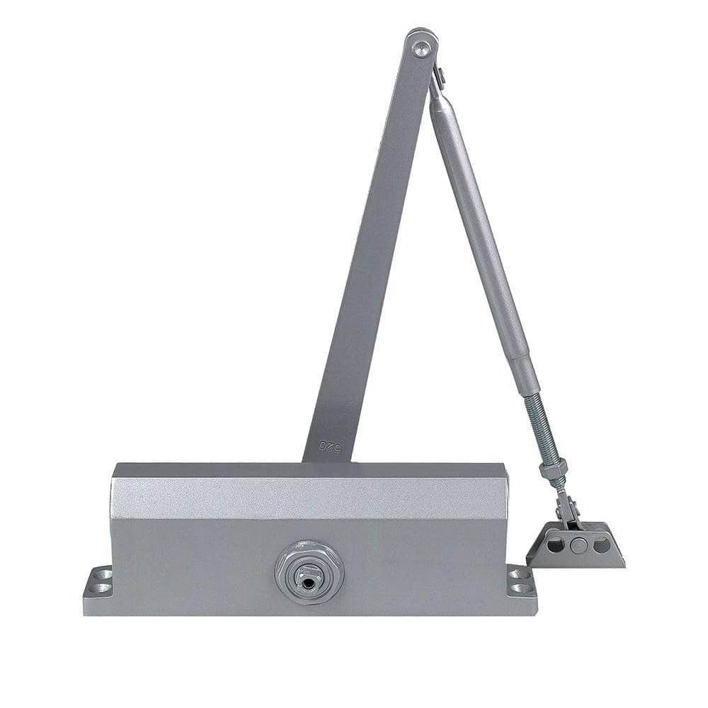 LIFE Security Products Medium Duty door closer can be adjusted to sizes 1 to 4 and is supplied in a sprayed aluminum finish. Closer can be used in all commercial applications and is ADA compliant. Can be used in both wood and steel doors.