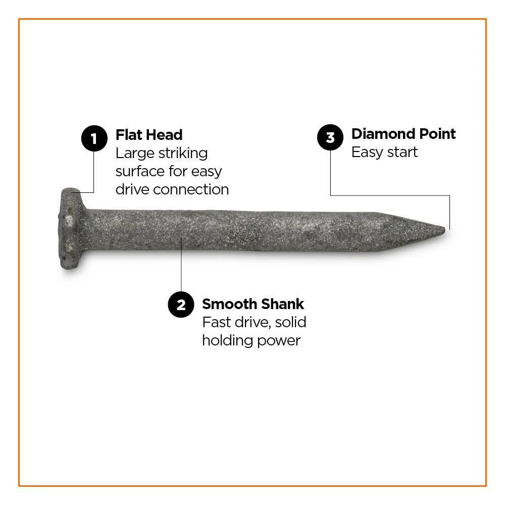 - Shank Style: Smooth shank is fast and easy to drive, while the short, heavy gauge provides superior holding power
