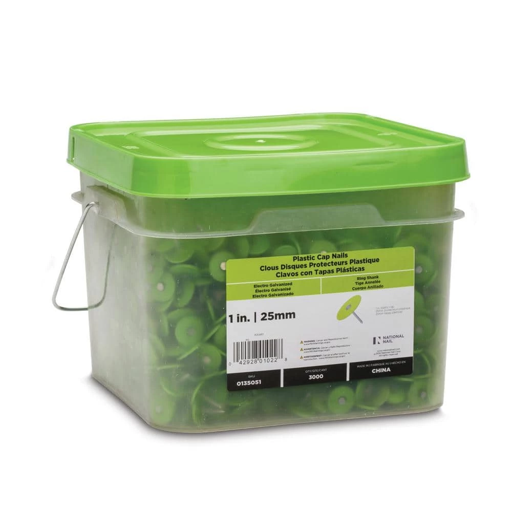 Use PRO-FIT cap nails to secure building envelope and better protect roof decks and sidewalls from moisture. The 1″ cap provides greater holding power than a nail or staple alone, making them a viable option for residential and commercial settings. Plus, the ring-shank nail secures the fastener into the wood. PRO-FIT cap nails are packaged as a unit, making them easy to grab and go on the job. Hand-driven plastic caps secure roofing underlayment, housewrap, and insulation to wooden roof decks.