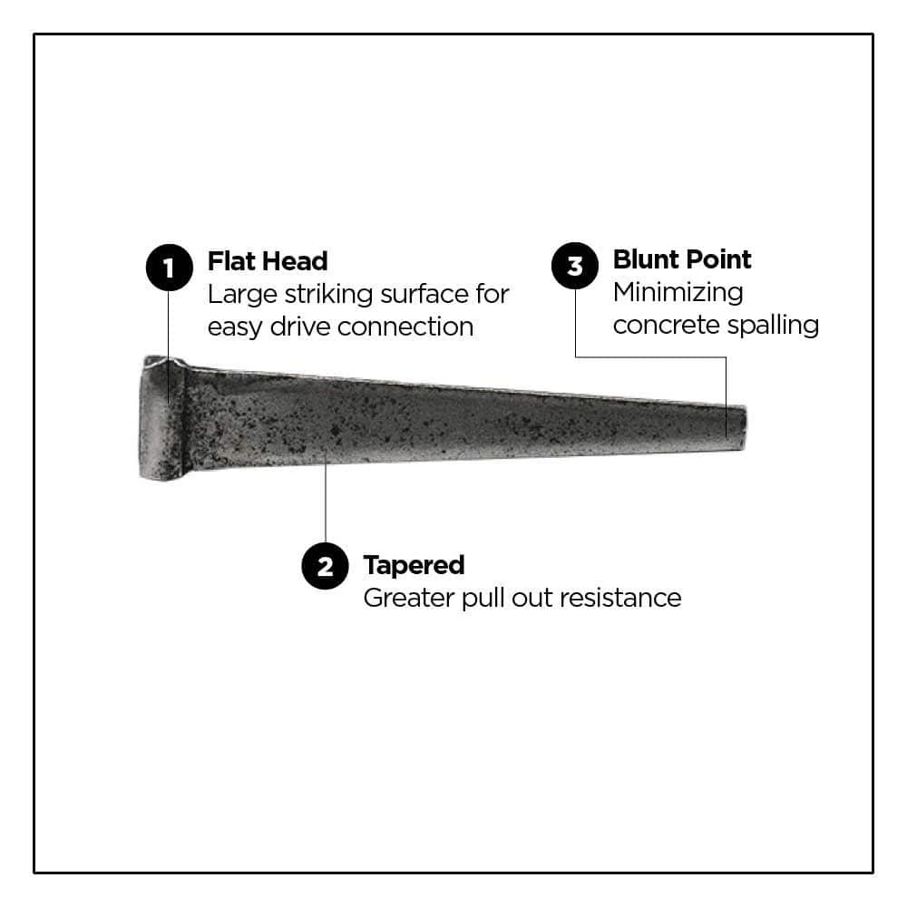 - Point Type: Blunt point minimizes concrete splitting