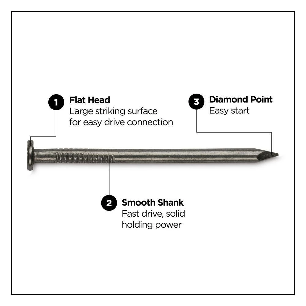Diamond point is easy to start, smooth shank drives fast