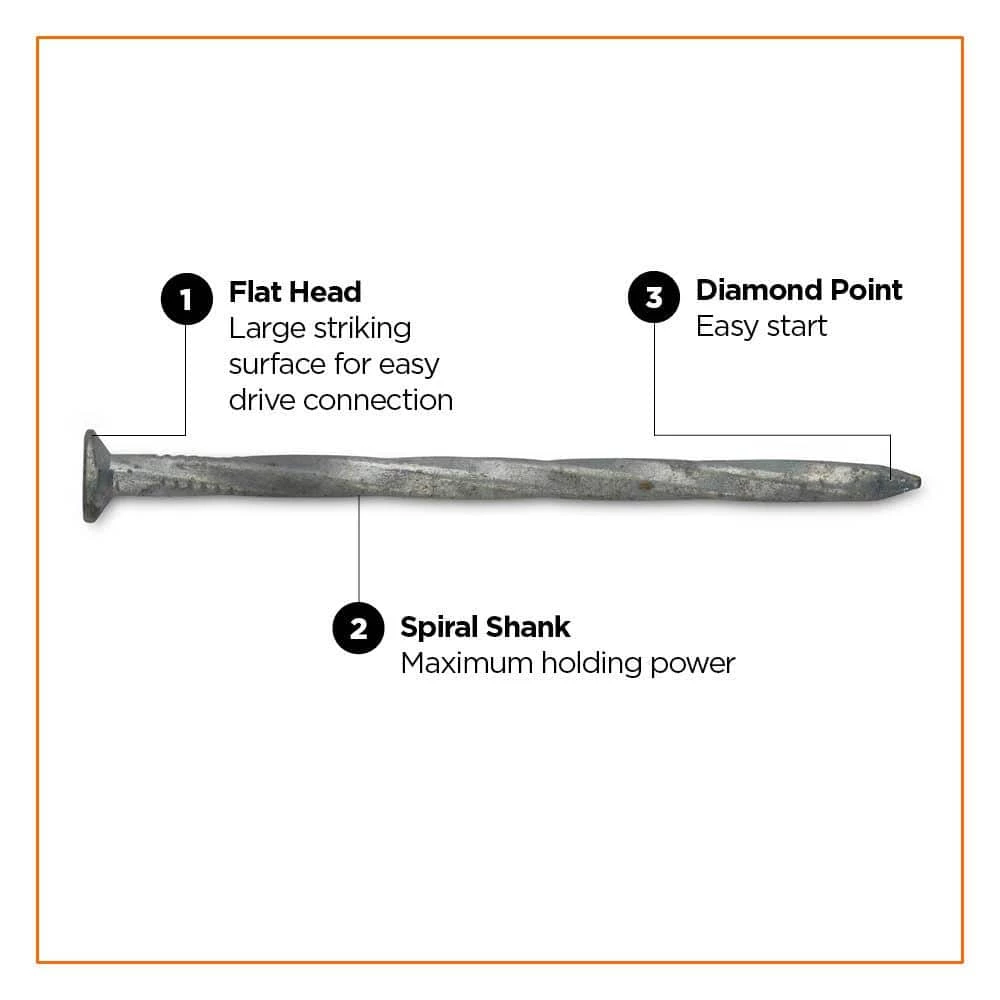 - Shank Style: Spiral shank resembles a screw pattern which offers superior holding power and withdrawal force