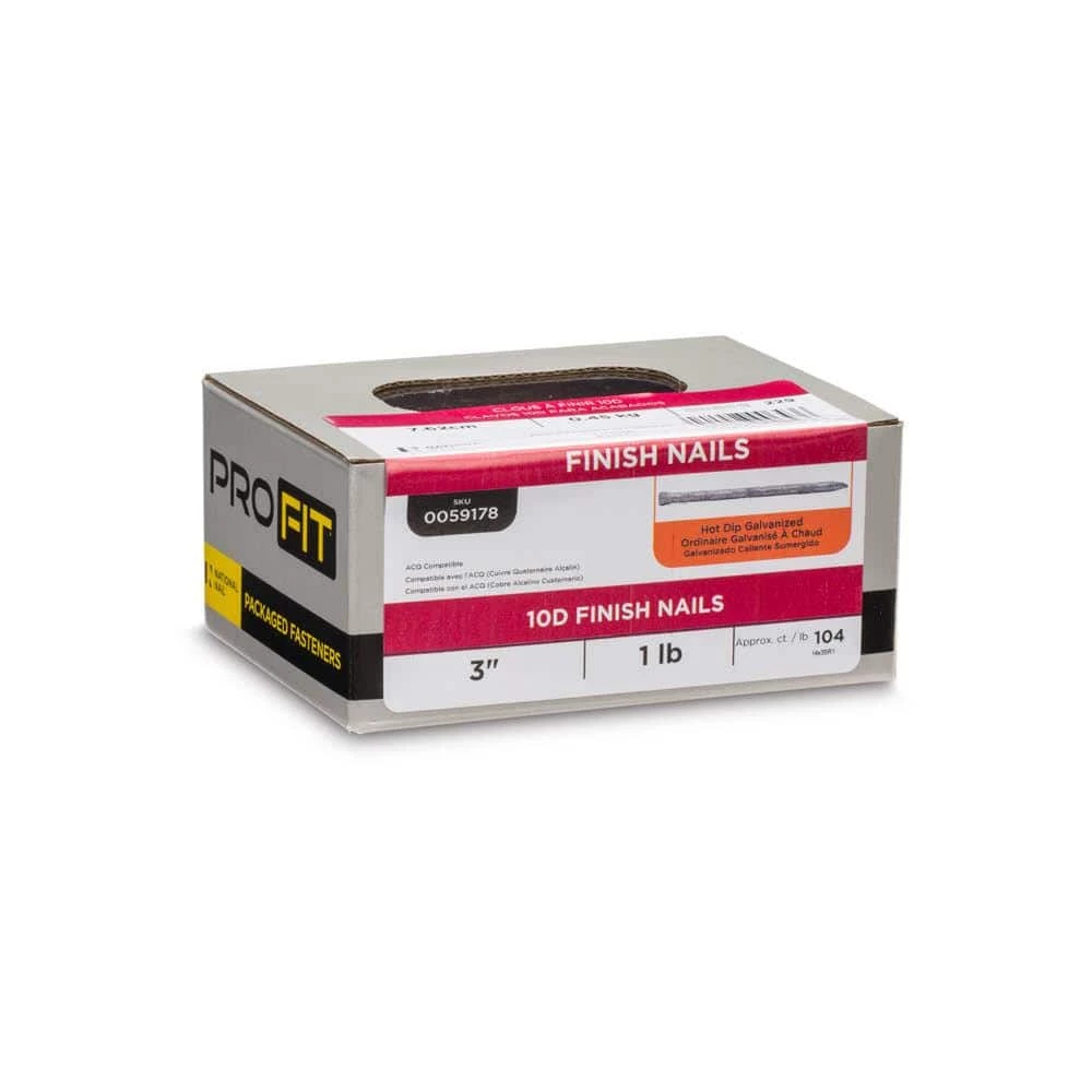 Finish nails are used for trim and fine finishing work where a smaller, less visible head is desired. PRO-FIT Finish nails come in three basic styles – Finish, Casing, and Hardened Trim. They are used to set door and window frames, apply trim, and in other applications where appearance is important.Finish nails are used for trim and fine finishing work. They can be easily concealed by countersinking the nail and filling the resulting void with a filler (putty, spackle, caulk, etc.)