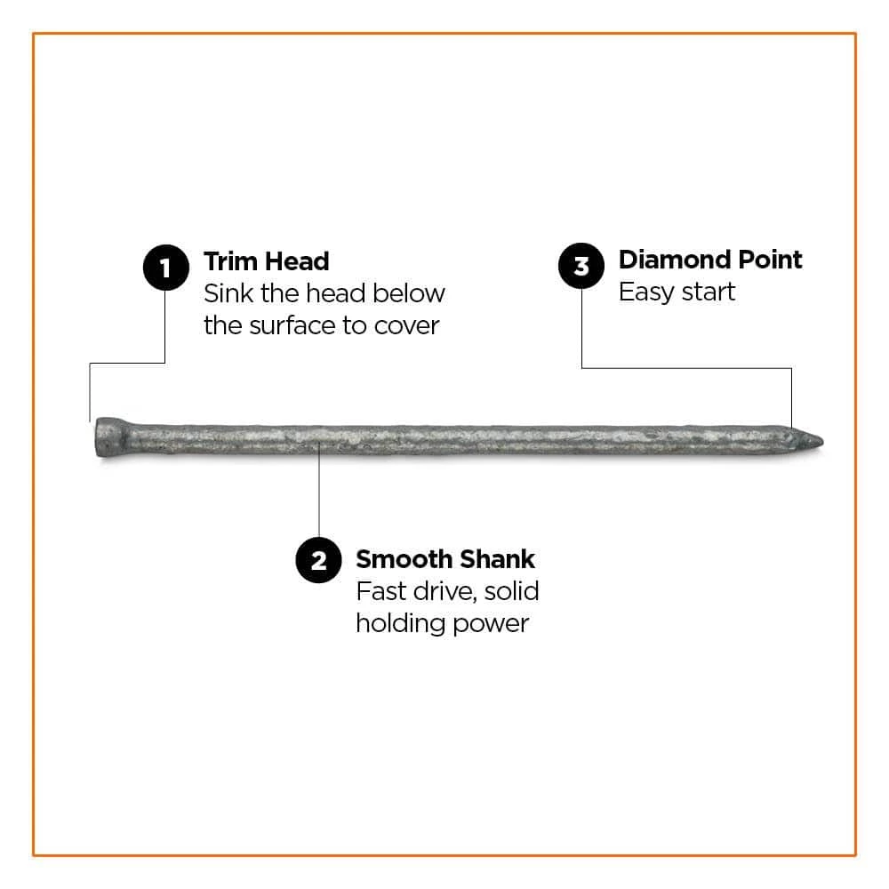 - Head Style: Trim head allows you to sink the head below the wood surface to conceal the fastener and achieve a smooth finished appearance