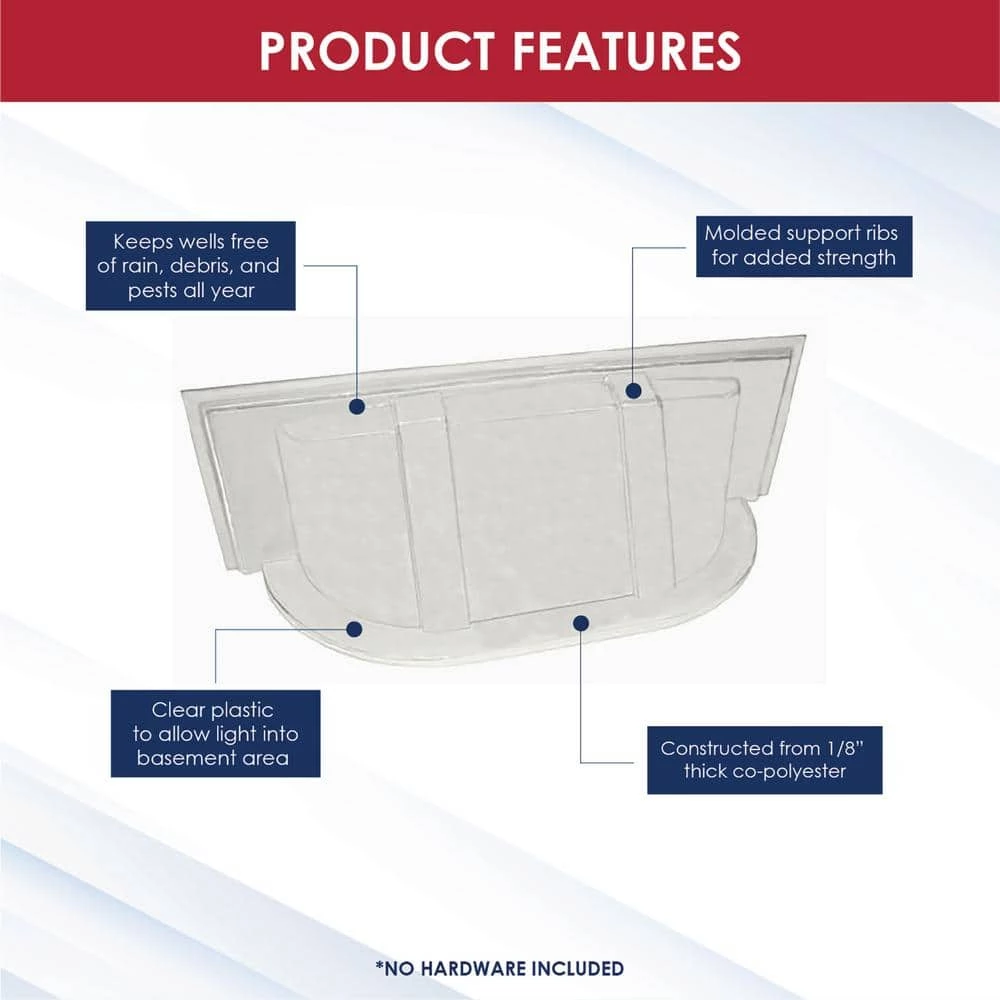 This straight, bubble window well cover from Shape Products is constructed from heavy-weight plastic. This cover protects your well from all kinds of debris, keeping them clean, functional and safe for your family. No installation hardware is included with this package. Please see the installation instructions below.