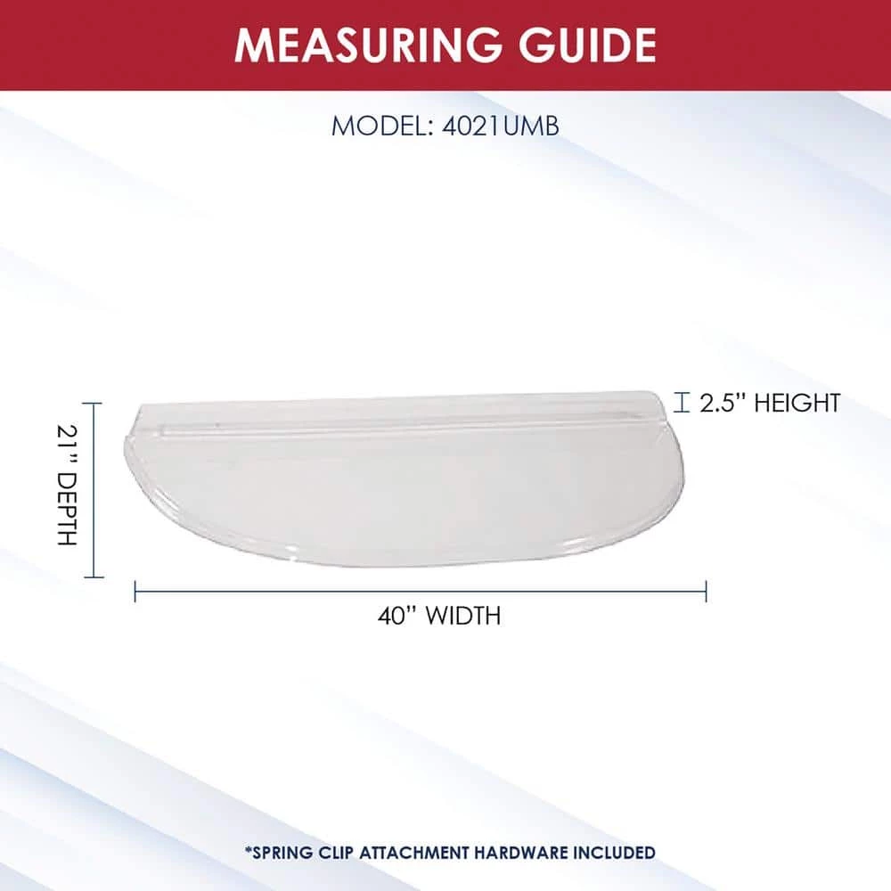 - Compatible with heavy-arched window wells ranging from 36 in. to 40 in. W and 19 in. to 21 in. projection