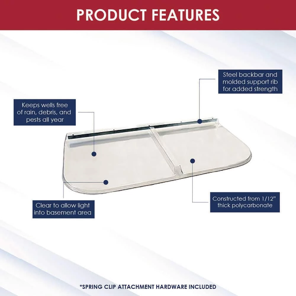 - Compatible with square window wells ranging from 48 in. to 52 in. width and 24 in. to 26 in. projection