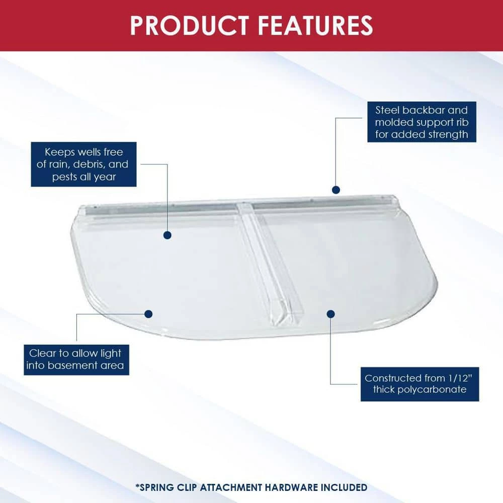 This heavy-arched, fire egress cover from Shape Products is constructed from polycarbonate plastic and features a flexible design for versatile application. The molded backbar and steel insert offer maximum support. Installation is quick-and-easy with included hardware and instructions. This cover protects your well from all kinds of debris, keeping them clean, functional and safe for your family.